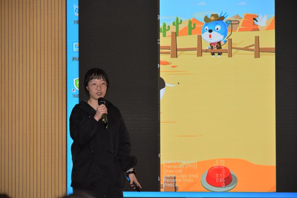 展示环节正式开始,首先是汪玉琦、庞雨静、夏玉清展示了各自的作品。她们各自展示了自己的游戏作品页面,汪玉琦分别从作品简述、作品框架、视频展示介绍其基于Java的跑酷小游戏设计。接着庞雨静演示趣味套牛小游戏,并从专业知识角度介绍了此款游戏设计的具体方面,包含小游戏的开发介绍、环境搭建与项目结构、资源导入与场景搭建、牛的设计与套牛检测。还进一步为现场同学展示具体环节的代码设计,引起现场同学的赞叹。夏玉清展示的作品以“长征”为主题,介绍产品背景及意义,希望通过提供一个在线长征基础知识学习教育平台,来展示和弘扬红军长征的历程、故事、精神、文化等。随后她向同学们具体展示产品功能。