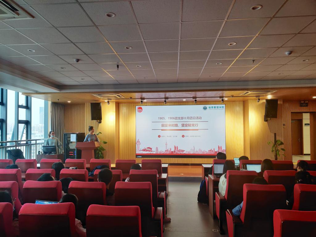 (通讯员 杜欣洁 褚予汐)信息管理学院1905及1906班十月团日活动于本周五10月31日在南湖综合楼10001报告厅圆满举行,两个班级全体同学参加了此次活动。本次活动旨在迎着历史的波涛,乘着时代的风帆,回望中国共产党走过的风雨历程,战胜一个又一个困难,取得一个又一个胜利,在党的领导下,踏上实现中国富强梦的新征程。