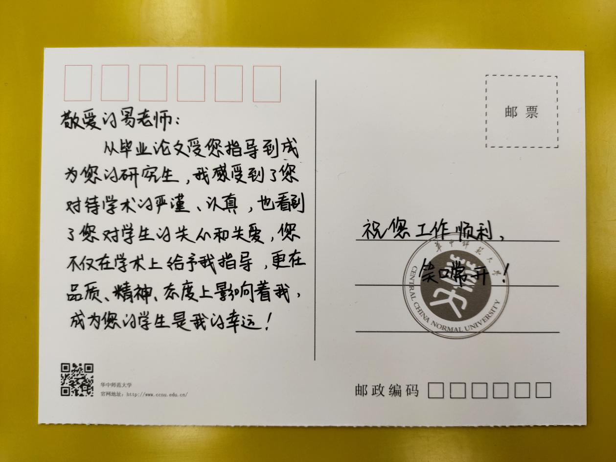 活动期间,我院研究生积极参与,通过明信片寄语活动拾起师生关于明信片的书写回忆,以传统的书写方式表达情感,在华师共同留给彼此一份珍贵的师生情谊。