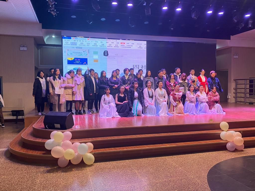 带领大家一起重温主人公的爱恨情仇,箫、葫芦丝、巴乌合奏的方式,带大家领略“棠梨叶落胭脂色,荞麦花开白雪香”的美丽景色。“凭栏孤伞舟前立,风吹杨柳细,半池春水一城花,烟雨暗千家。”卿衣汉服社带来的舞蹈《江南行舟》用舞蹈魅力向观众展现江南的风土人情。二胡协会胡艳同学带来独奏曲目《葡萄熟了》,这一极具新疆民族特色的欢快乐曲完美地展现了新疆的传统特色和当地人民的热情。二胡作为传统乐器,其极富感染力和穿透力的音色感染了全场的观众,演奏结束的那一刻无一不禁拍手称赞。伴随着阮艺协会的《想见你》,四社迎新晚会画上了圆满的句号。