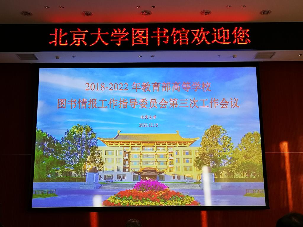 2020年12月15日,教育部高等学校图工情报工作指导委员会第三次工作会议在北京大学图书馆召开。来自全国各省市区高校的图工委委员、各省图工委秘书长到场参会。我院院长李玉海教授参加了本次会议,并在会上作题为:服务“双新全金”的高校图书馆“十四五”规划探析的学术报告。