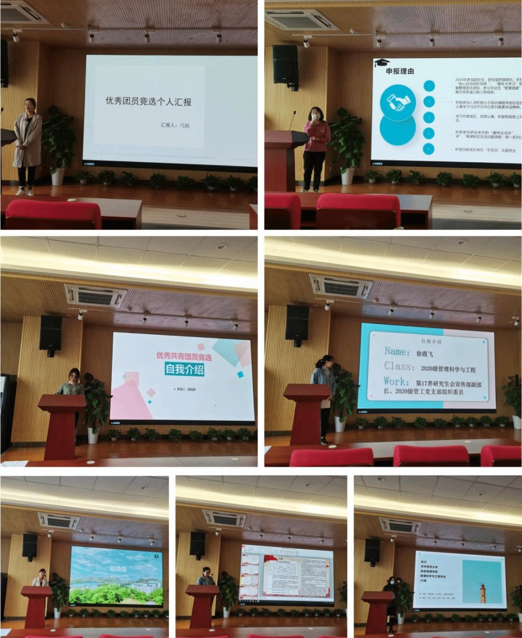 (通讯员 贺满)为进一步营造积极向上的校风学风,增强组织凝聚力,充分发挥优秀团员的模范作用,激励同学对学习工作各方面作出评析与调整。2021年3月30日中午12点,信管学院研究生团总支于南湖综合楼10001会议厅举办“研究生优秀团员团干推优评选大会”,参与本次大会的有各班班长团支书、研会干部、各支部书记以及此次申报同学。