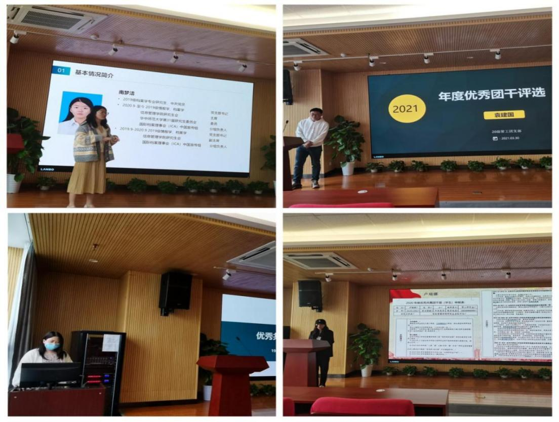 大会伊始,由团总支李冰洁同学介绍整个大会流程,此次大会主要分为优秀团干评选、优秀团员评选与民主打分评选三个环节。紧接着,大会进入优秀共青团干部的评选阶段,顾佳云、南梦洁、卢瑞娜、袁建国等同学依次就自己的学生工作、学术研究、相关荣誉等方面进行了竞选个人汇报。之后,参会人员根据申报同学的竞选演讲进行评比打分。
