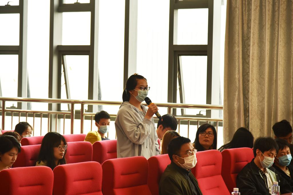 在互动环节中,同学们与任友洲进行深入交流。有同学提出目前文化领域的泛娱乐化,青年关注八卦娱乐而耗费青春岁月,应该怎么解决这样的问题?任友洲回答到,家庭教育很重要,他举例书中习近平的生动例子,鼓励青年人读书,特别是对今后发展有利的书,成为学习的动力,因为阅读学习的积累,让习主席在发言讲话中可以引经据典、充满哲理,不断深化中国特色社会主义理论精髓。活动进入尾声,主持人刘宝卿发言并颁发纪念品。
