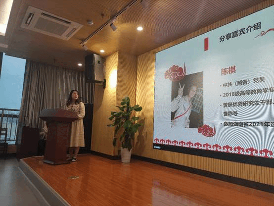 首先进行分享的是教育学院2018级高等教育学专业硕士研究生陈棋同学,陈琪同学参加了湖南省2021年选调生选拔考试目前已进入考察环节。陈棋同学以结构化面试为主题向同学们分享了面试流程、面试题型,并从工作关系、突发事件、情景模拟、规划事件处理、现象认知、职业认知、自我认知这些方面向同学们介绍了答题思路、答题要点、答题方法等。问答环节中陈琪提醒同学们官网信息一定要看,同学之间一定要多多交流,考试规则和大纲一定要了解清楚。