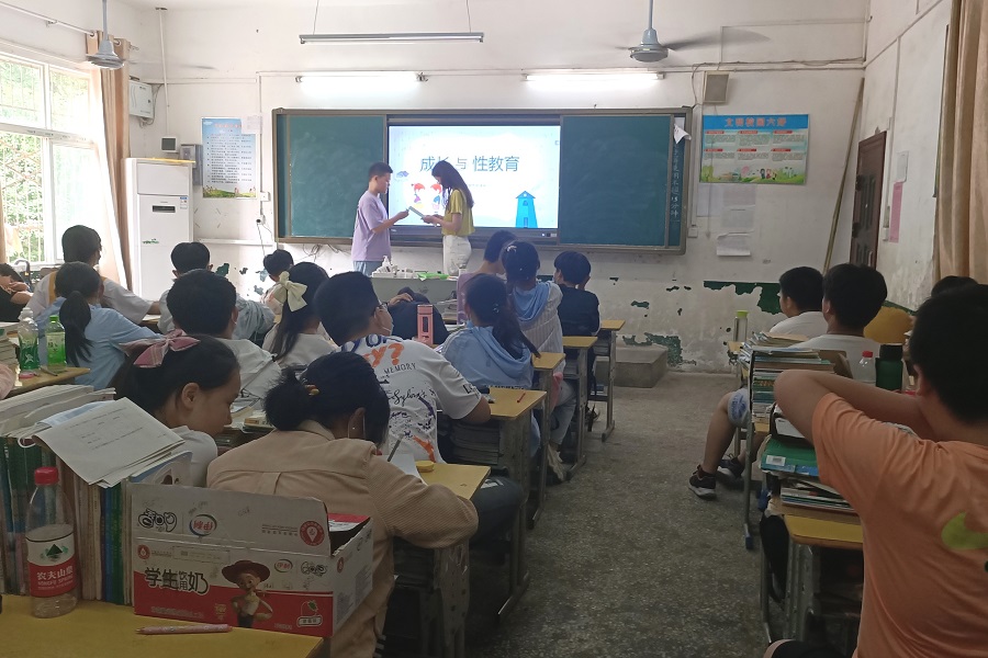 志愿者们准时到达目的地后,在老师的带领下前往七年级一班开展志愿活动,得到了同学们的热烈欢迎。活动开始,志愿者秦瑜通过PPT,以简单的图片和文字的形式,向同学们介绍了男孩与女孩有什么不同,随后通过举例讲解在日常生活中大家应该如何爱护自己的身体,并告诫大家在保护好自己的同时也要尊重他人的隐私,如进入他人房间时要先敲门,在得到允许后才能进入。尽管同学们在听到某些部分时会不好意思地偷笑,但还是认真跟着志愿者学习。