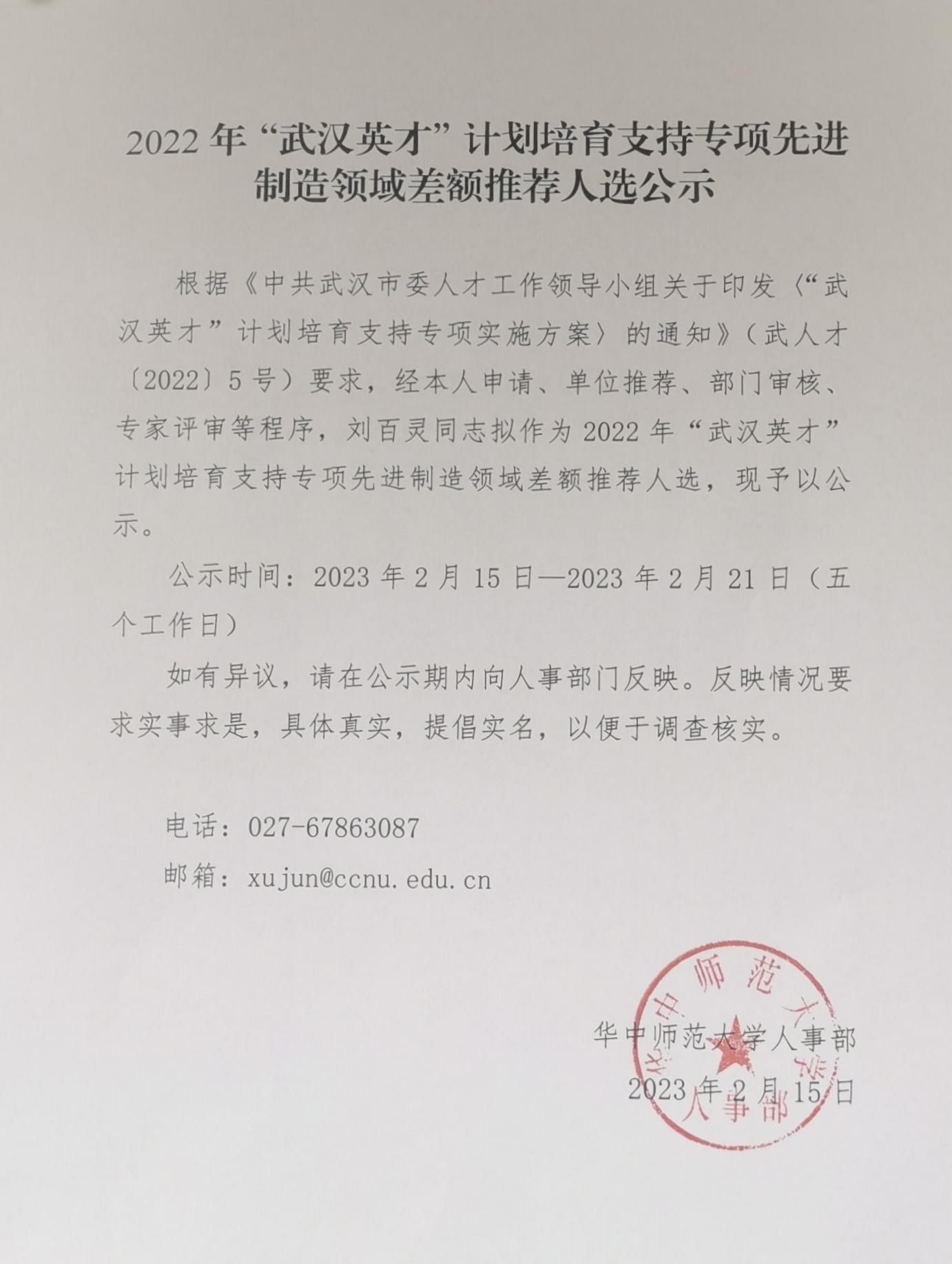 (通讯员 张梦雨)为贯彻落实人才强市战略,根据《“武汉英才”计划培育支持专项实施方案》(武人才〔2022〕5号)文件和市委人才办有关工作要求,培养支持全市城市建设领域战略人才后备力量,加大城市建设领域人才培养支持力度,完善“武汉英才”计划人才队伍建设体系,面向各单位选拔支持城市建设领域“武汉英才”50名。其中,我院刘百灵教授入选2022年“武汉英才”计划培育支持专项先进制造领域(网络安全分领域)差额推荐人,在此,谨向刘百灵教授表示祝贺。