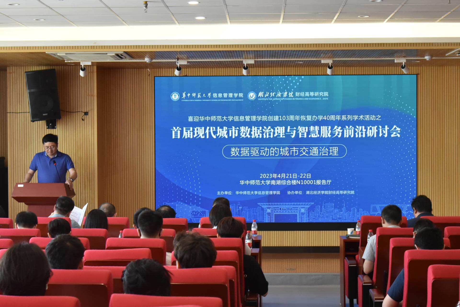 4月21日-4月22日,由华中师范大学信息管理学院主办、湖北经济学院财经高等研究院协办的首届“现代城市数据治理与智慧服务”前沿研讨会在我校南湖校区10001报告厅隆重举行。此次研讨会是我院喜迎创建103周年、恢复办学40周年庆系列学术活动之一。天津大学管理与经济学部讲席教授/博士生导师、国家级领军人才、中宣部文化名家暨“四个一批”人才获得者马寿峰教授,天津大学管理与经济学部主任助理、博士生导师、教育部复杂管理系统实验室副主任贾宁教授,麻省理工学院可感知城市实验室(MIT Senseable City Lab)高级研究员、交通方向负责人贺正冰教授等专家学者受邀出席。