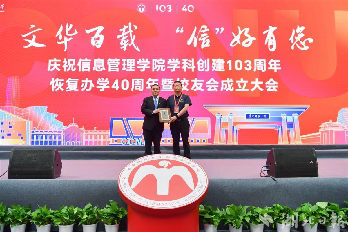 华中师范大学党委书记夏立新在大会上回顾了信息管理学院的办学历程,和一代代信管人的自信自强、守正创新。他说,希望信息管理学院继续守正创新、不断奋进,结合自身学科专业特色,在高素质拔尖人才培养中实现新突破,在数字中国建设中体现新作为。希望信管校友会发挥桥梁纽带作用,汇聚智慧,拓展资源,凝聚合力,也希望校友们用实际行动诠释“忠诚博雅、朴实刚毅”的华师精神,弘扬华师大爱精神。