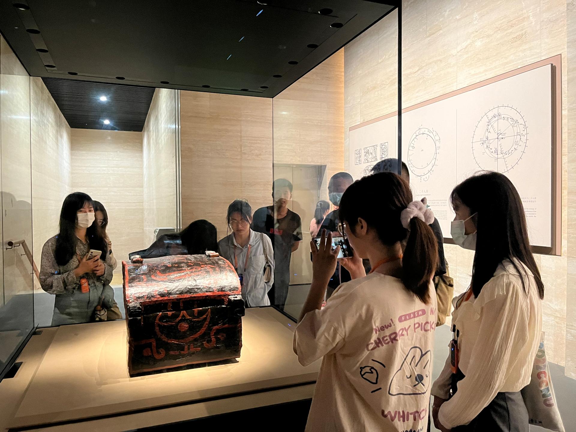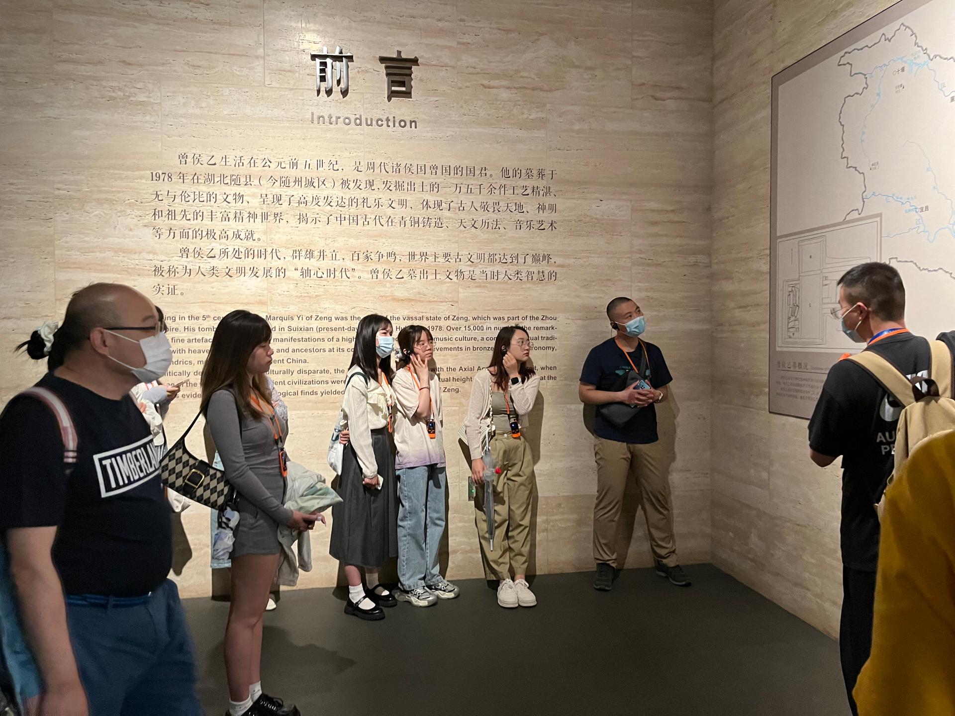 2023年5月17日上午,在张自然副教授的带领下,选修我院《元数据应用与实践》课程的2022级图书情报专业研究生前往湖北省博物馆参观,经过实地参观、深入讲解、专业融合等环节的沉浸式教学,以生动直观的方式提升学生对数字博物馆建设过程中元数据理论和应用知识的理解。