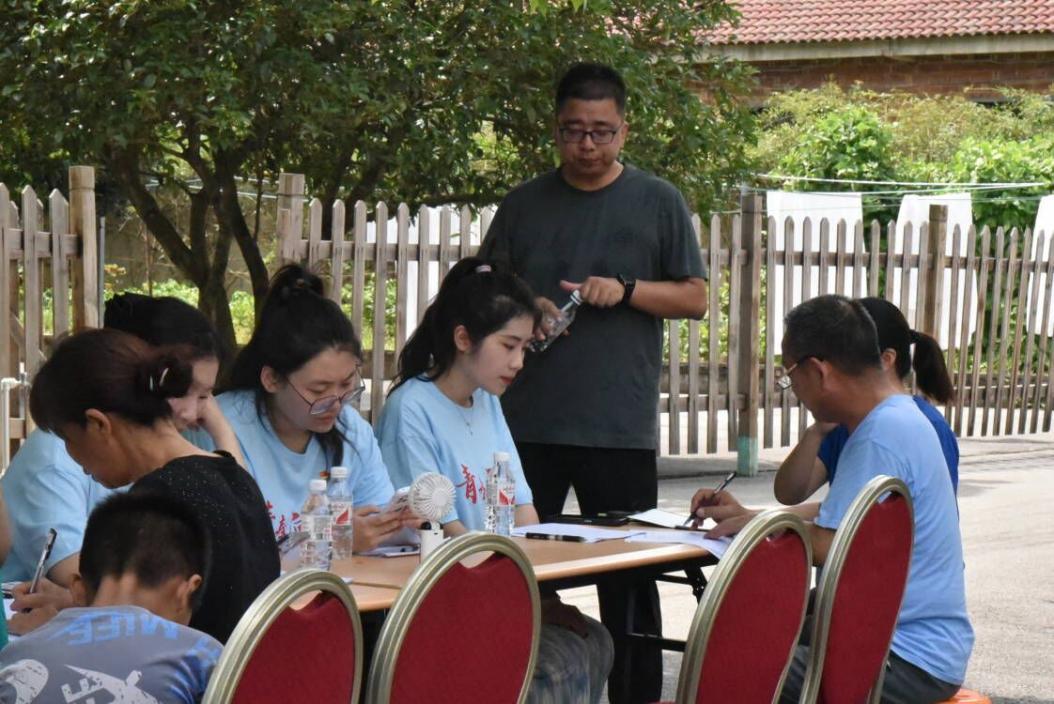 6月28日上午,志愿者们早早来到报名地点。在带队老师王乐的指导下,大家各司其职。搬桌子、摆物资、整理表格……各项环节都有条不紊地开展进行。一张张桌子一字排开,一份份报名表摆放其上,志愿者们耐心等待家长们的到来。