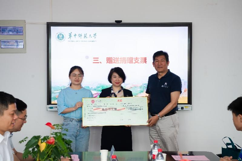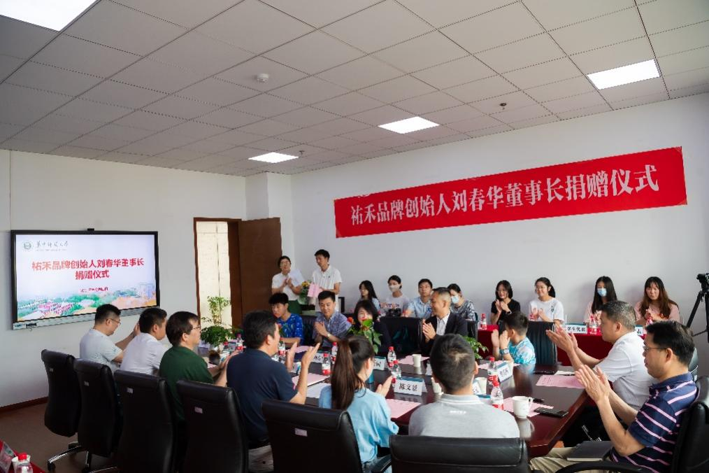 (通讯员 张学偲 蒋可鸣)7月4日上午,祐禾品牌创始人刘春华董事长捐赠仪式在华中师范大学南湖综合楼10003会议室举行。祐禾品牌创始人刘春华,信息管理学院2005级校友吕世国,祐禾公司高管王刚毅,校党委常委、党委副书记、基金会副理事长陈迪明,学校教育发展基金会秘书长、校友办主任郭庆,信息管理学院党政班子成员以及师生代表参加了捐赠仪式。仪式由学院党委书记王雨露主持。