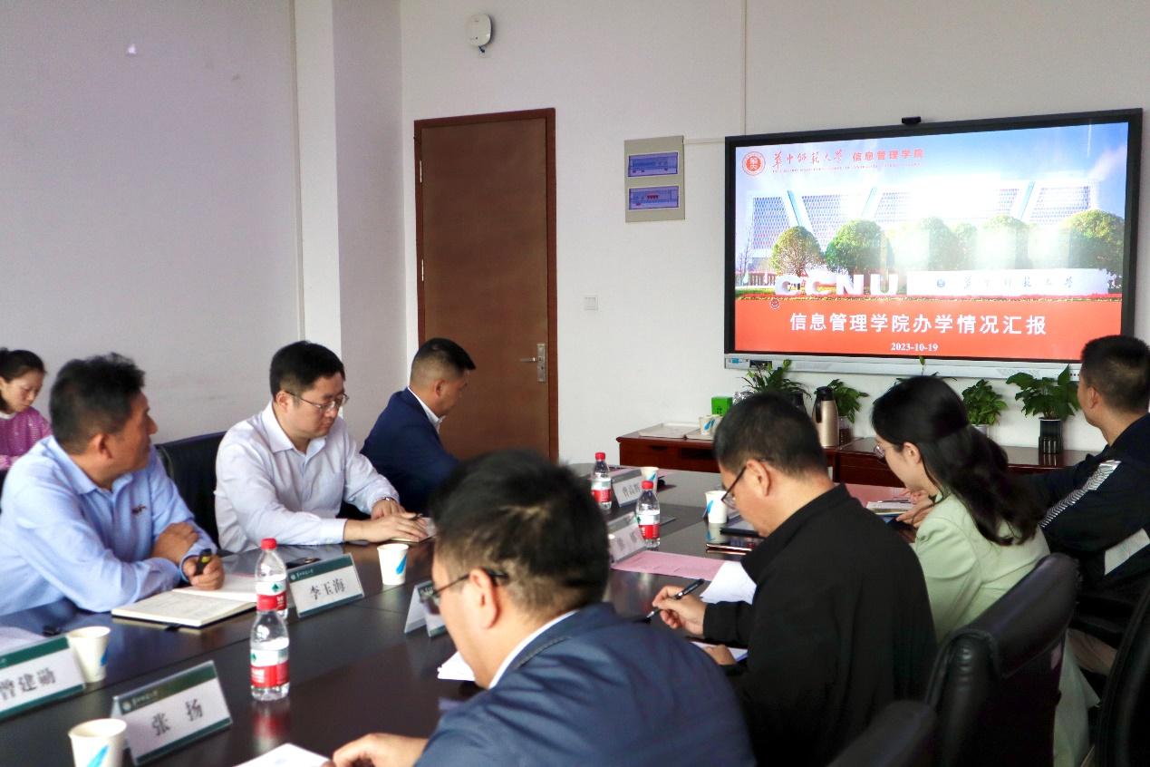 (通讯员 肖丽霞 欧龄鸿 郑潇潇)为进一步实现学科高质量发展,加强学科专业内涵建设,10月19日上午,华中师范大学副校长李鸿飞带队来我院调研学科建设工作,学科建设专题研讨会在N10003召开。副校长李鸿飞,发展规划处副处长张扬、副处长熊娜、办公室主任徐瑾、工作人员李东,信息管理学院党委书记王雨露、院长李玉海、党委副书记王涛、副院长曹高辉,以及信息管理学院教师代表翟姗姗、曾建勋、李延晖、易明、陈静参会,会议由信息管理学院党委书记王雨露主持。