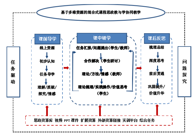 图2 基于多维资源的混合式课程教与学协同教学模式图