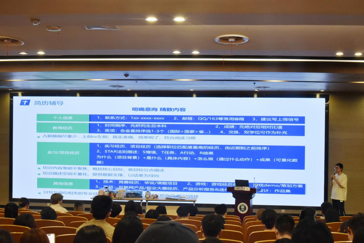 在进行简历辅导时,蒋一晨通过视频为学生们总结了简历制作的八字箴言:明确意向,精致内容。他强调,一份出色的简历首先要具备明确的定位,将自己的求职意向明确地写在简历开篇,如同指南针一般,引领整个简历的走向。履历信息要做到精简化,将关键信息突出,展现个人的核心竞争力;还要学会用数据说话,这就要求我们在日常工作中要有意识地记录并提炼工作成果。最后,蒋一晨提醒学生们,简历的篇幅最好控制在一页之内,排版布局要简洁清晰,避免过于花哨的设计。
