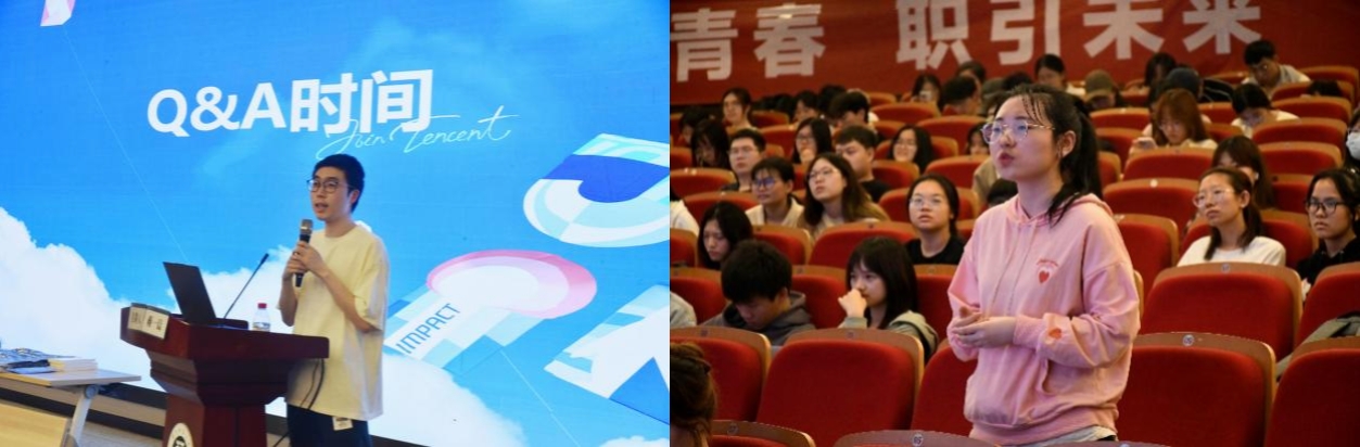 为帮助同学们更有针对性的解决简历制作中的问题,本次培训设置问答环节。同学们就如何选择合适岗位、如何克服首次寻找实习中遇到的阻力等疑惑积极举手询问,蒋一晨也根据自己的经验对同学们提出的问题一一进行解答并提出了自己的建议。