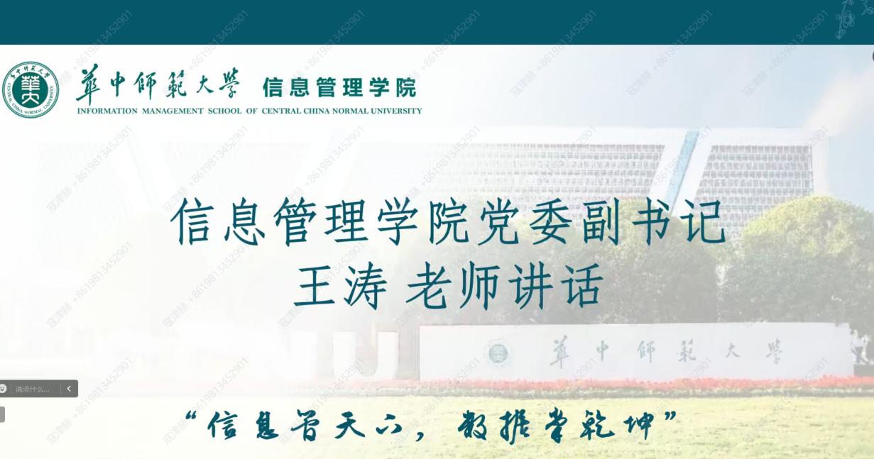 (通讯员 寇津赫)为增强家校之间的沟通,构建协同育人的有效机制,帮助新生适应大学生活,华中师范大学信息管理学院于2024年8月25日召开2024级本科新生及家长线上见面会。院党委副书记王涛出席本次见面会,2024级专职辅导员蒋可鸣、兼职辅导员张巍瀚和2024级新生及其家长参与会议。