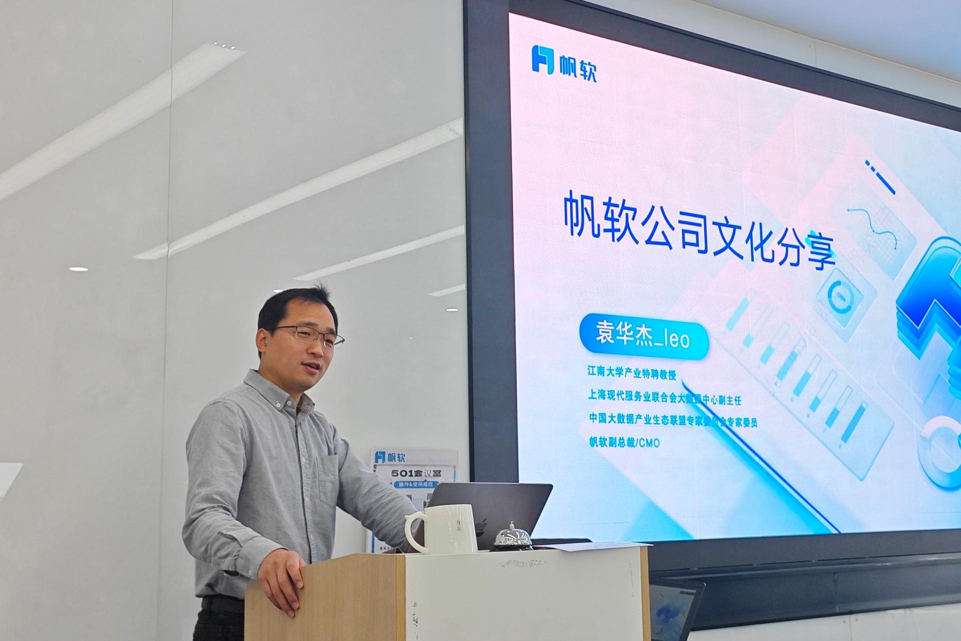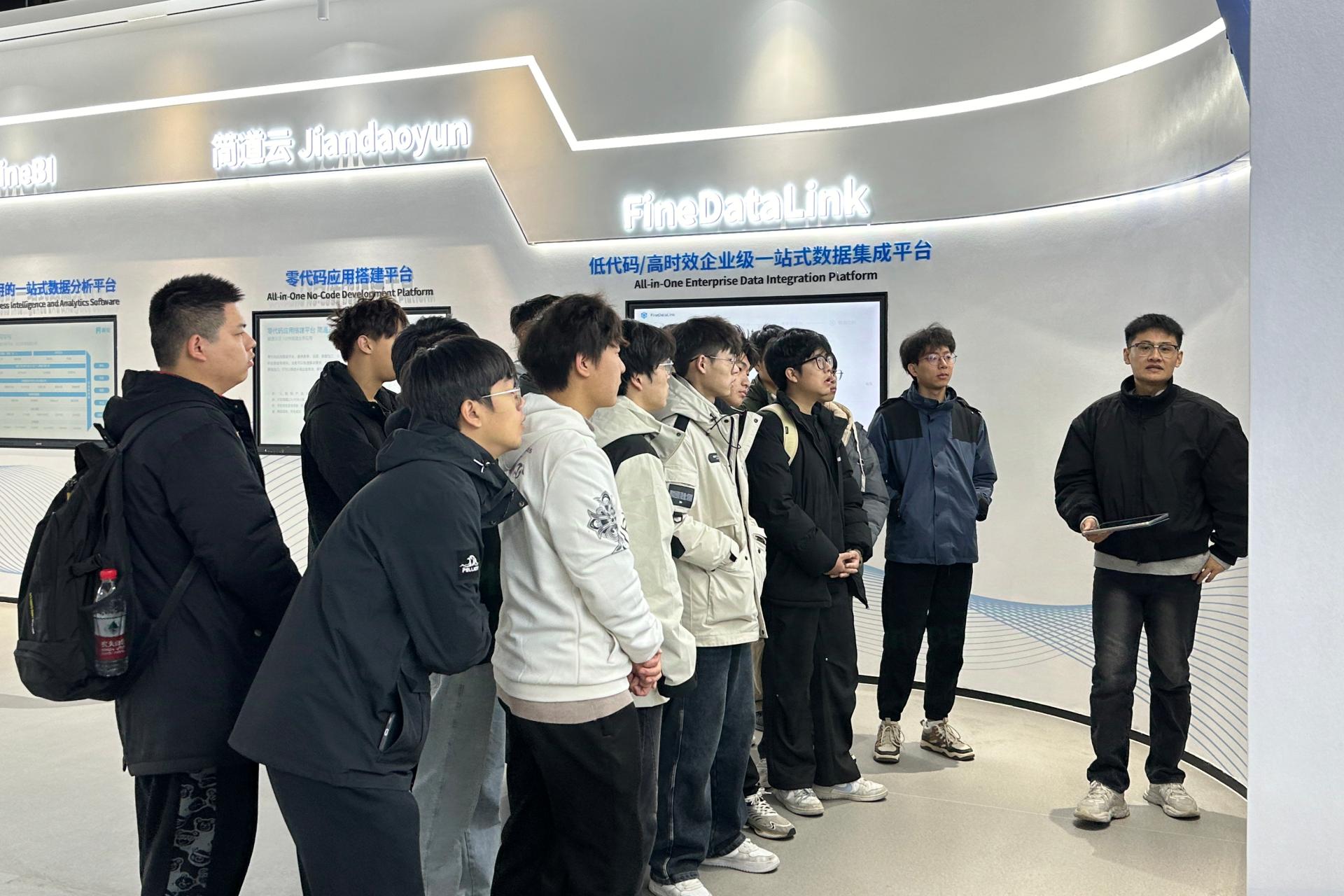 12月8日上午,师生前往帆软软件公司,一家专注商业智能和数据分析领域的中国大数据BI和分析平台专业提供商。在公司展厅,工作人员为大家讲解了帆软的发展历程、产品服务、获奖荣誉及合作客户等情况,通过一个个生动的商业智能案例,同学们不断领会到“让数据成为生产力”的内在逻辑。随后,帆软副总裁袁华杰详细介绍了帆软的企业文化,起源于“小网吧”的创业史、“永不上市,利润共享”的初衷……在场同学对帆软自由平等的工作氛围表示向往。同时,袁总指出,希望同学们在校园学习中要积极探索,提高主动性,保持对行业发展的热情。