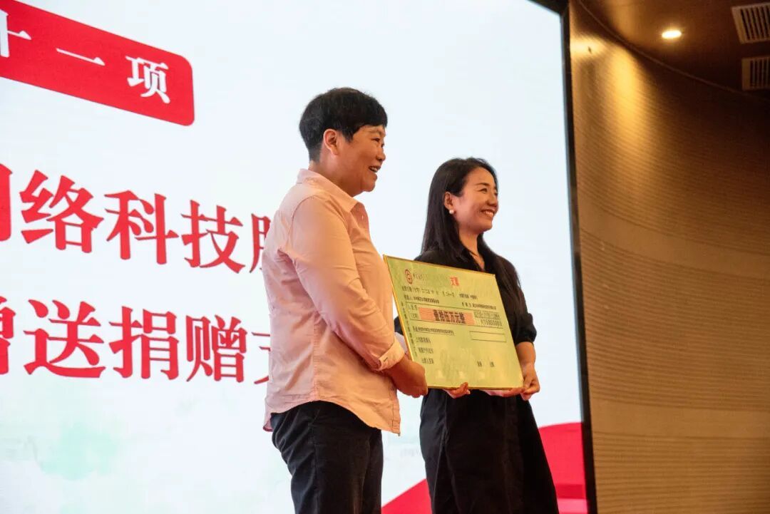 在捐赠助学金环节中,湖北中科网络科技股份有限公司赠送了捐赠支票15万元,并由彭娟发表讲话。彭娟表示,公司深知企业发展依赖社会支持与优秀人才,积极履行企业责任关注,资助有志于信息科技的寒门学子,不使其因经济困境失学。她强调,尽管助学金给予的支持力量有限,但她期望能带动更多社会力量支持教育,并承诺公司将持续捐赠,在实习就业上提供帮助。同时她期望青年学子能够接续砥砺前行,练就过硬本领,成为国家的栋梁之材。