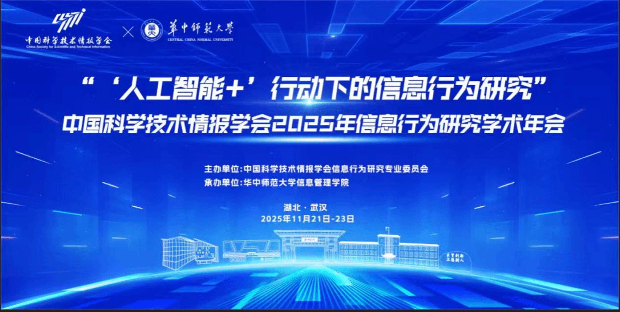(通讯员 龙思勤)2025年11月21日至23日,中国科学技术情报学会2025年信息行为研究学术年会在华中师范大学南湖校区隆重举行。华中师范大学党委常委、副校长吴丹,武汉大学人文社科资深教授、中国科技情报学会监事长马费成,中国科学技术情报学会副理事长兼秘书长、中国科学技术信息研究所首席研究员潘云涛,南开大学校长助理、中国科学技术情报学会信息行为研究专业委员会主任李月琳,贵州大学副校长、脑机协同信息行为教育部重点实验室主任潘煜,昆山杜克大学协理副校长、IEEEFellow李昕等专家学者出席活动并致辞。开幕式由华中师范大学信息管理学院院长曹高辉教授主持。
