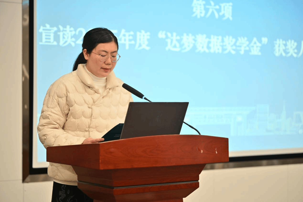 在奖学金颁奖环节,信息管理学院党委副书记蒋可鸣宣读2025年度“达梦数据奖学金”获奖人员名单。本次奖学金设一、二、三等奖,分别有4名、7名、9名学子获奖,校企双方领导嘉宾共同为获奖学子送上荣誉与肯定。