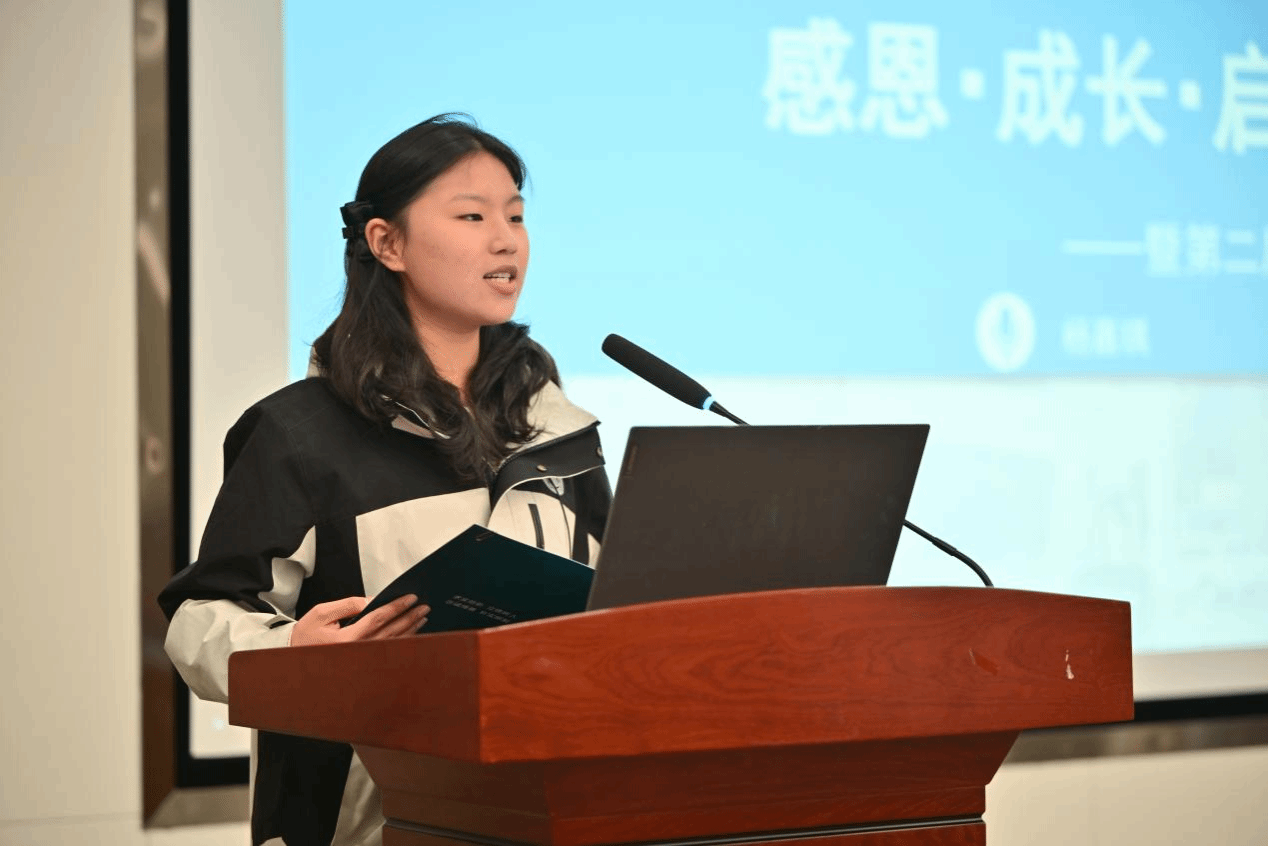 颁奖结束后,2024级杨嘉琪作为首届实验班代表与达梦奖学金获得者发言,她向学校与达梦数据的悉心培养表示感谢,并分享了在实验班一年的成长收获。她提及实验班提供的优质课程、企业实践、学习资源与集体氛围,助力其专业能力与综合素养全面提升,获评国家奖学金等多项荣誉。希望第二届同学加入的同学们珍惜机遇、勤学笃行,并祝愿校企合作与实验班建设再上新台阶。