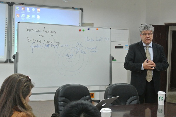 (通讯员 宁丹)2月26日下午,芬兰土尔库大学教授Jukka heikkila一行应邀到我院918会议室作了一场题为“Service Design and Business Modeling”的讲座。我院曹高辉、胡潜、翟珊珊、程秀峰、及董庆兴老师及各级博士、硕士研究生参加了讲座,讲座由院长夏立新主持。