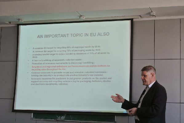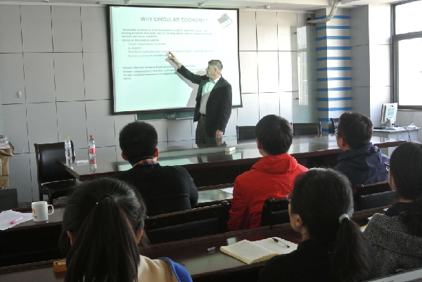 Reima教授此次讲座为我院学生主要介绍了他近期有关循环经济的理论研究,通过各类案例,首先Reima教授对于欧盟国家在循环经济的各个方面近年来的发展现状,如垃圾回收,清洁能源利用以及热点技术等。同时对于解决循环经济中存在很多挑战的环节,如垃圾回收费用,各类可重复利用物质的逆向物流供应链,提出了自己的解决思路。更重要的是,Reima教授也从商业模式的角度,为我们阐述了如何将循环经济从原来的一种负担,发展成为如今炙手可热的热门行业。当然,在其研究中也存在着诸多的挑战,在讲座的最后也同在场的同学们分享了自己的思考。
