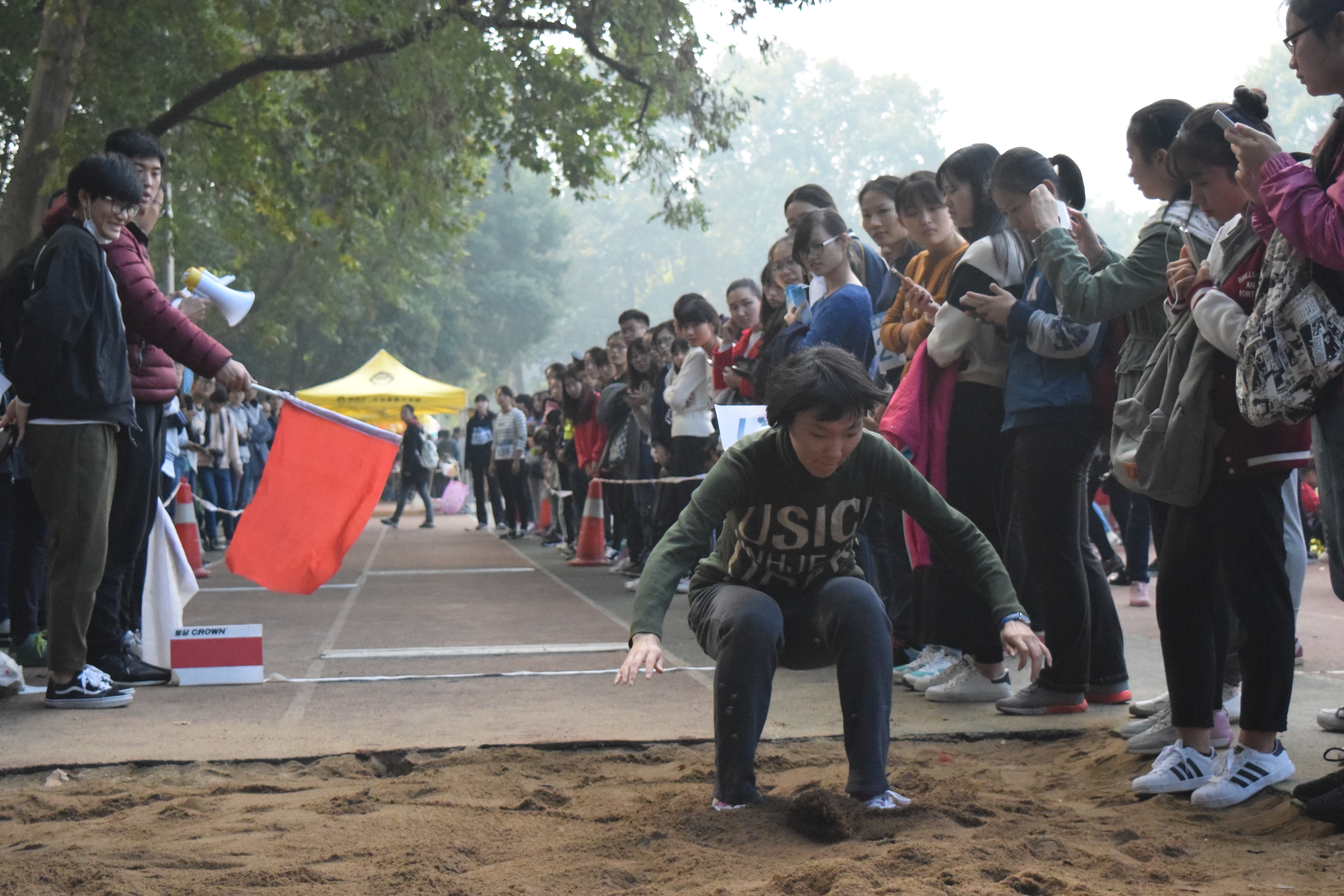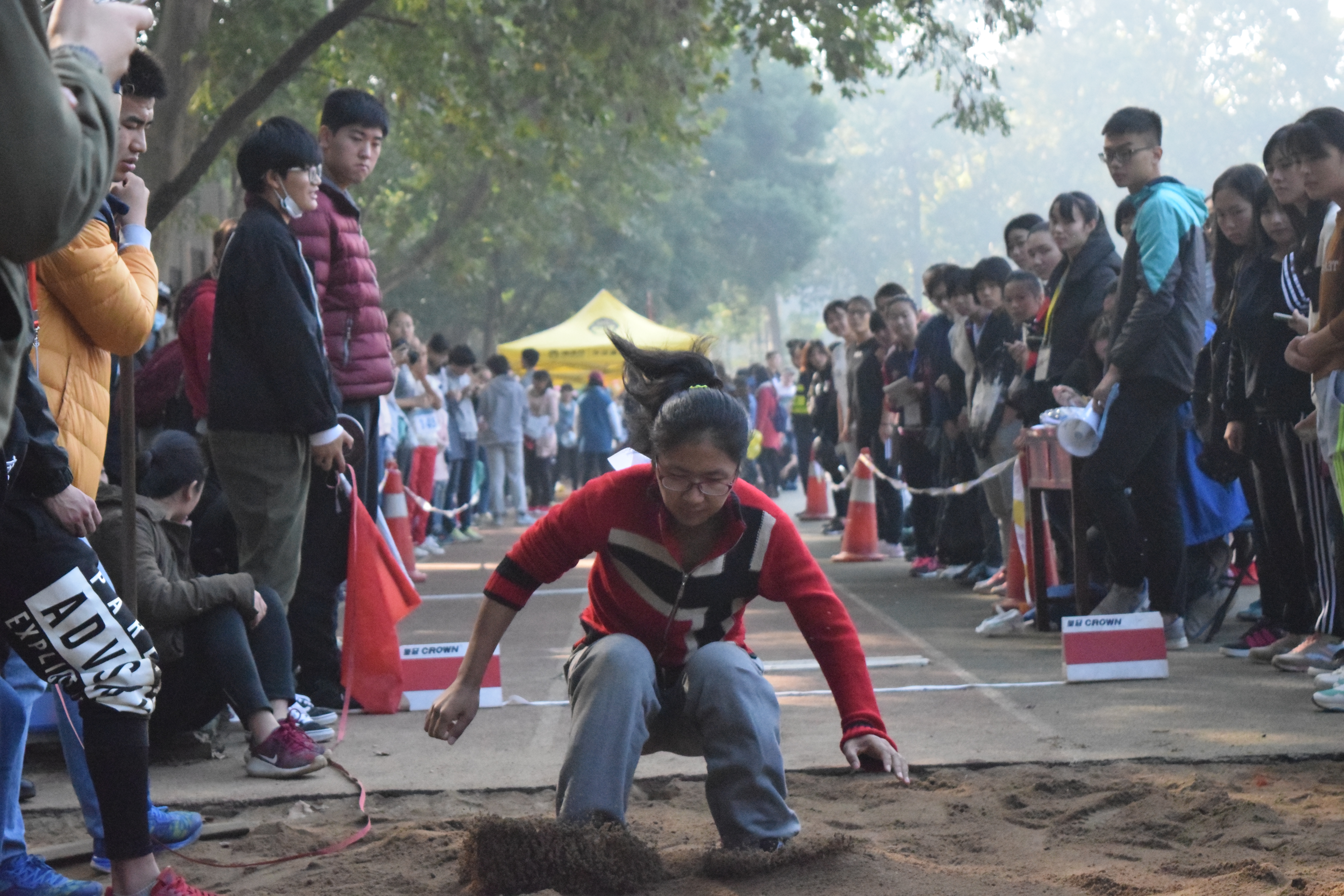 姚玲同学在第8组出战赛场,表现更是优异,三轮比赛后,她最终以最远3.59米的距离勇夺第七。位于第9组的李施展同学虽然在昨天参加了3000米的比赛,非常疲累,仍然拼尽全力,跃出属于自己的精彩。