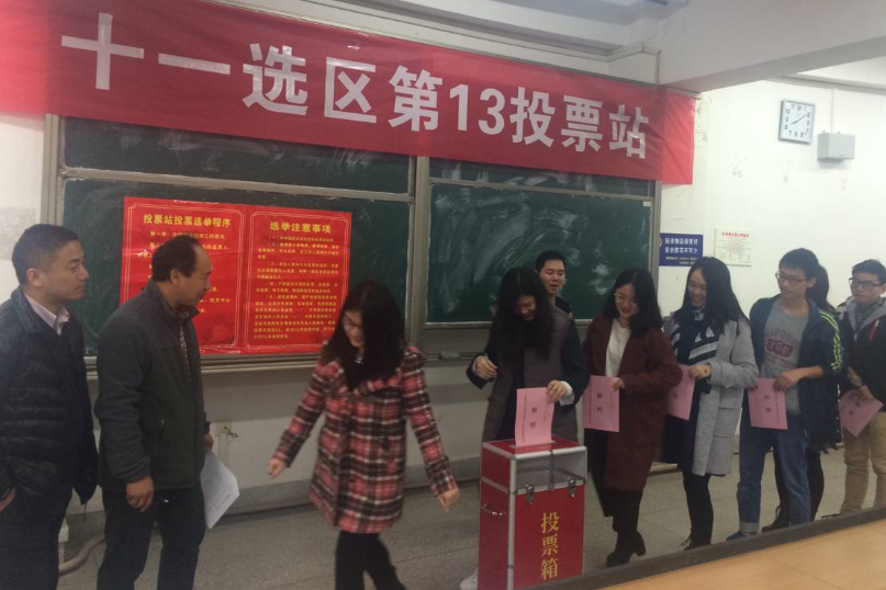 (通讯员 李施展涂雯晶)11月16日上午,华中师范大学信息管理学院于9号楼举行2016年洪山区人大换届选举珞南街第十一选区投票选举工作。本科生、研究生与教工职员分别在9-21教室与918会议室进行投票选举工作。信息管理学院全体师生携带选民证参与选举。