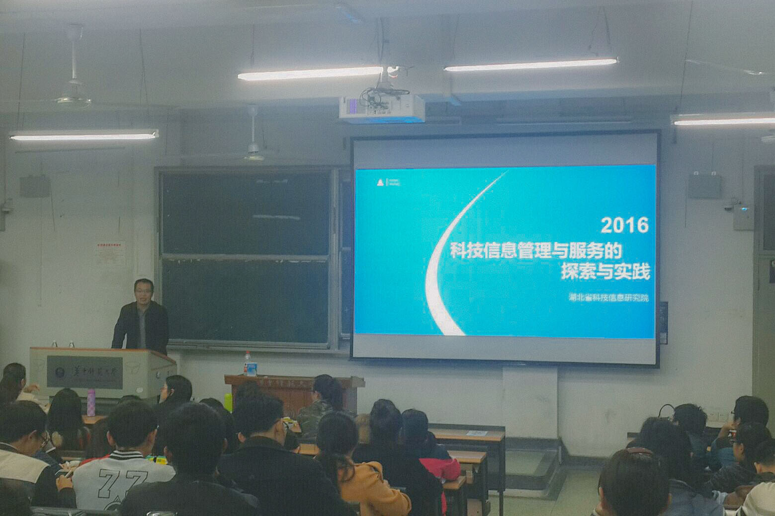 ,信息管理学院特地邀请湖北省科技信息研究院的李勇院长在8号楼201教室为16级信息管理学院的学生上了一节新生研讨课。