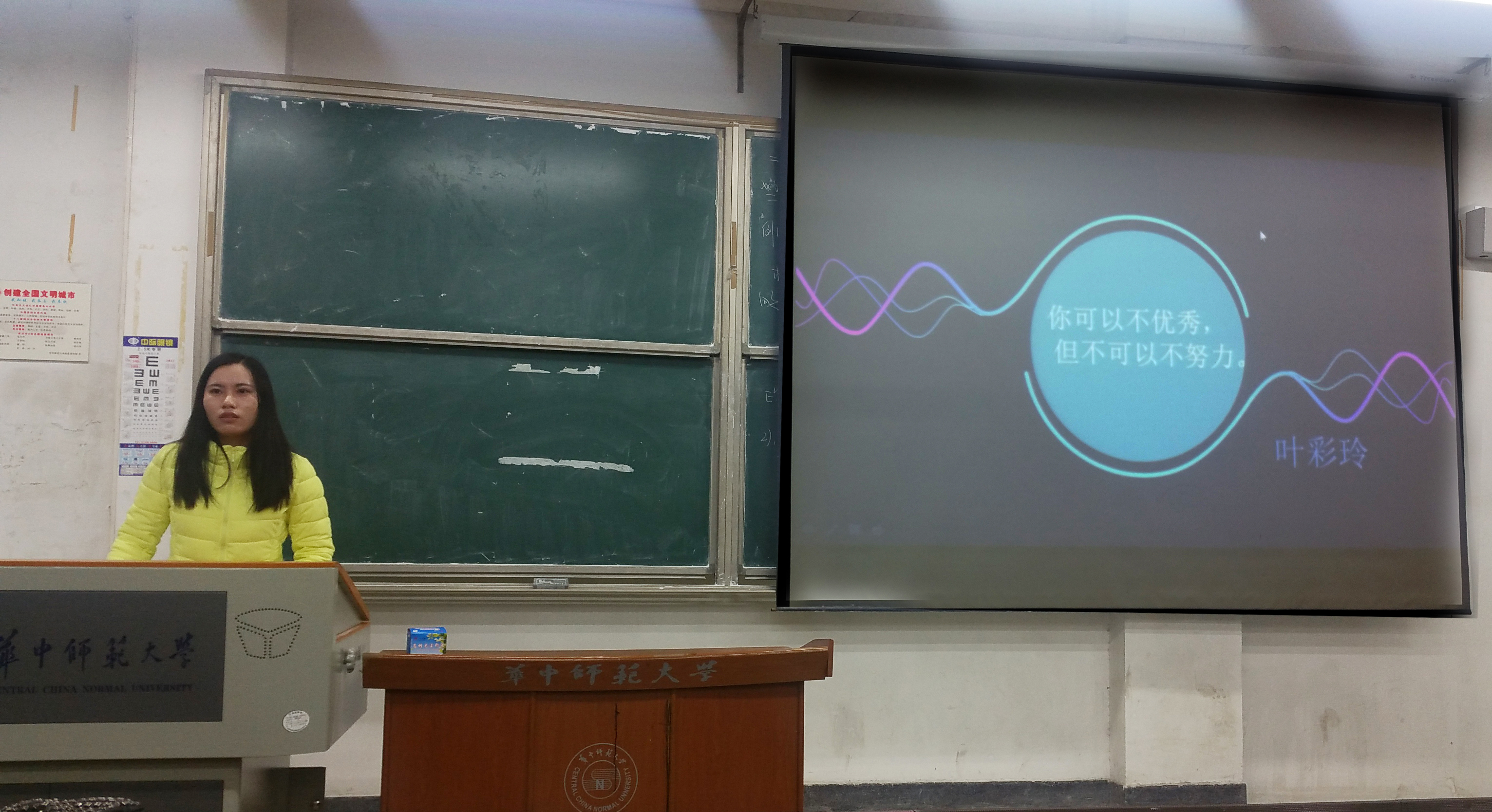 最后是已经与51信用卡签约的叶彩玲学姐。叶彩玲学姐先后从比赛经历,求职经历,个人规划三方面来进行分享。学姐说,比赛是积累经验的过程,在比赛中,能够学会去运用专业知识,为以后的升学或就业都增加了自己的竞争力。而在求职分享中,叶彩玲学姐提到了她在3家公司——跟谁学、北森测评和51信用卡的面试,工作以及抉择问题,向同学们传授了宝贵的经验。