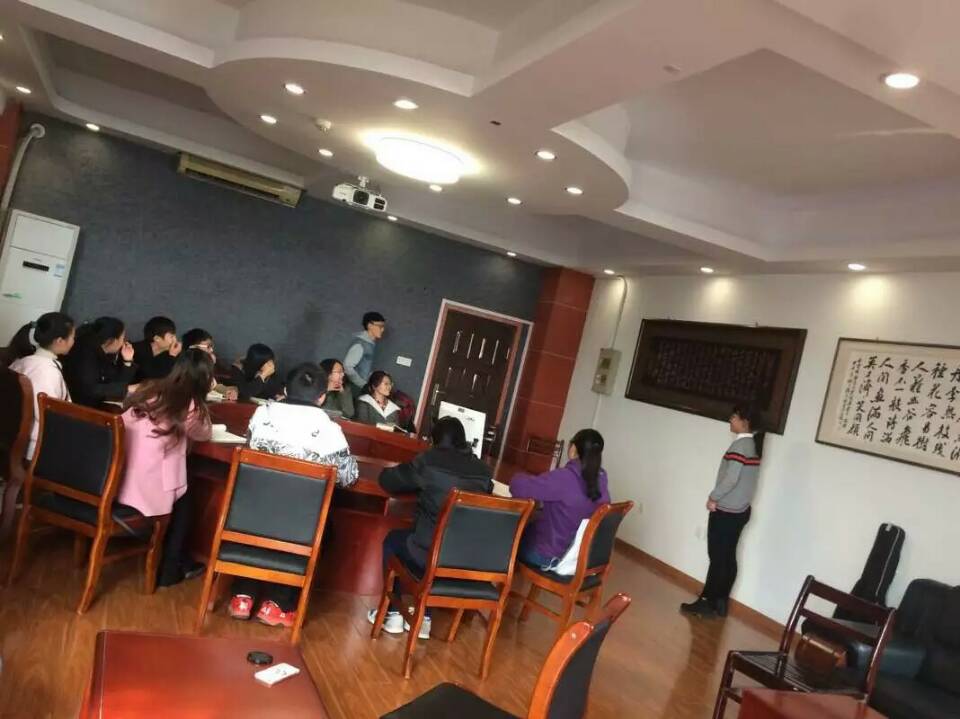 活动开始后,第一个故事的拍摄地点是在9号教学楼。将近一点时,1602班全体同学齐聚在9号教学楼的9楼,准备开展以“模范教师”为主题的故事一的拍摄。随后,同学们经过申请借用了9楼的一间办公室作为拍摄地点。在故事一的拍摄中,一人扮演模范老师,十三名同学扮演听课学生。由于是第一次进行视频拍摄,大多数同学都表现出不熟练以及忘词,但整个拍摄过程妙趣横生,其乐融融,每个人的脸上都带着愉悦。最终经过大家反复的录制以及耐心的调整,故事一的拍摄任务圆满完成。