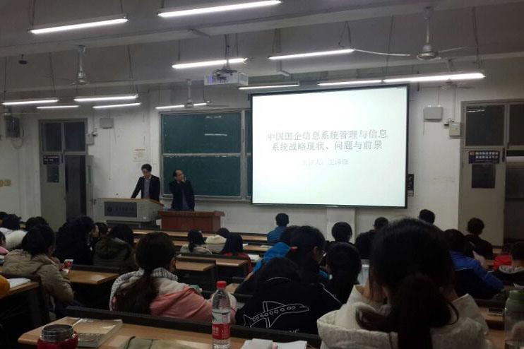 (通讯员 田建辉 兰栋枢)12月12日晚18点,信息管理学院16级全体学生在8号楼8201教室的新生研讨课上听取信息系统专业讲座。王泽锋老师担任主讲人,与同学们一同探讨中国国企信息系统管理与信息系统的专业相关问题。