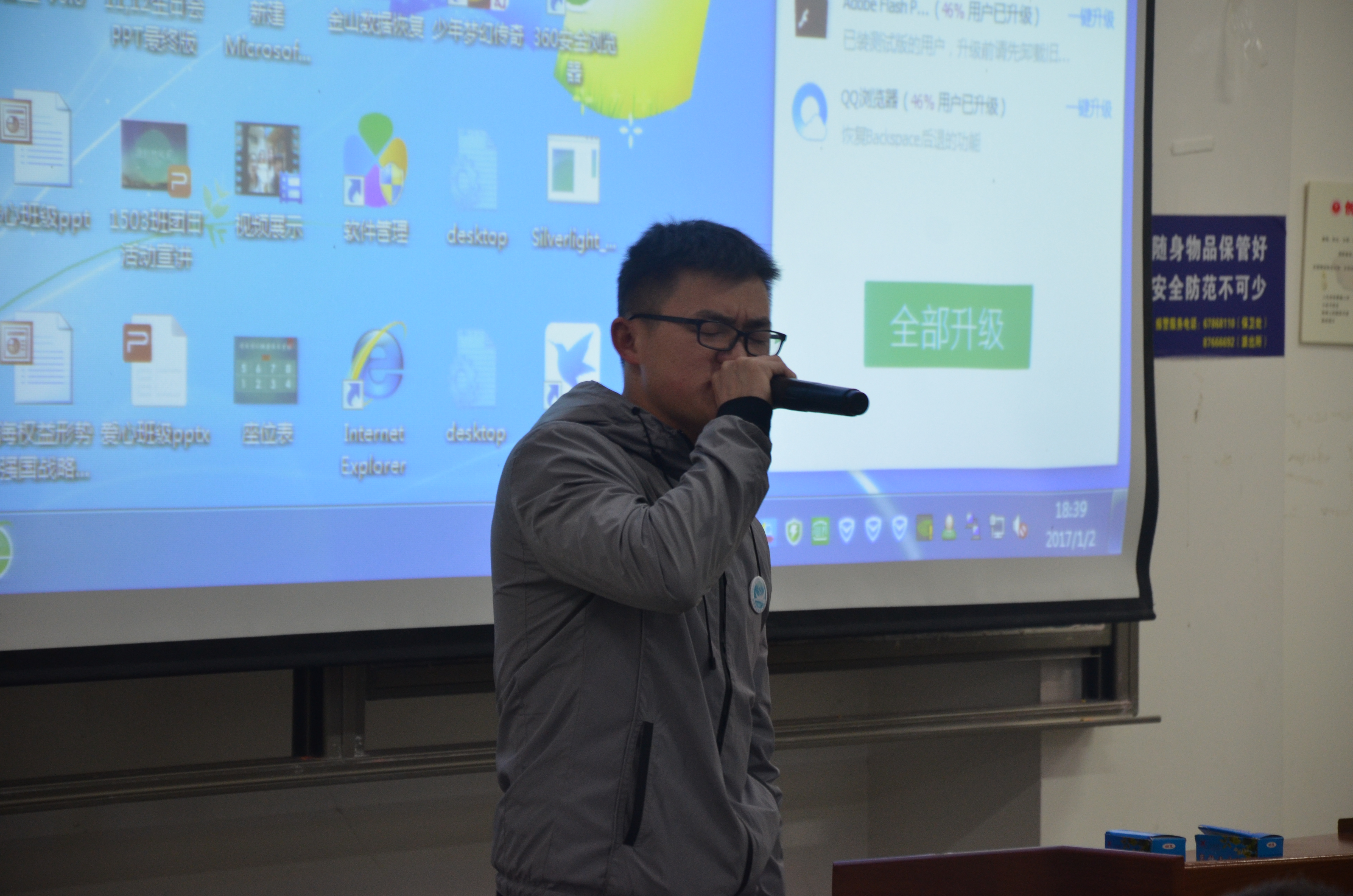 (通讯员周琼宇 摄影兰栋枢)在2016年12月29日以及2017年1月8日的两次晚点名上,信息管理学院举办了16级转专业同学的告别表演。在欢笑和泪水中,信息管理学院16级同学们向下学期将要转走的同学们表达了自己的不舍之情,并送出了自己的美好祝福。