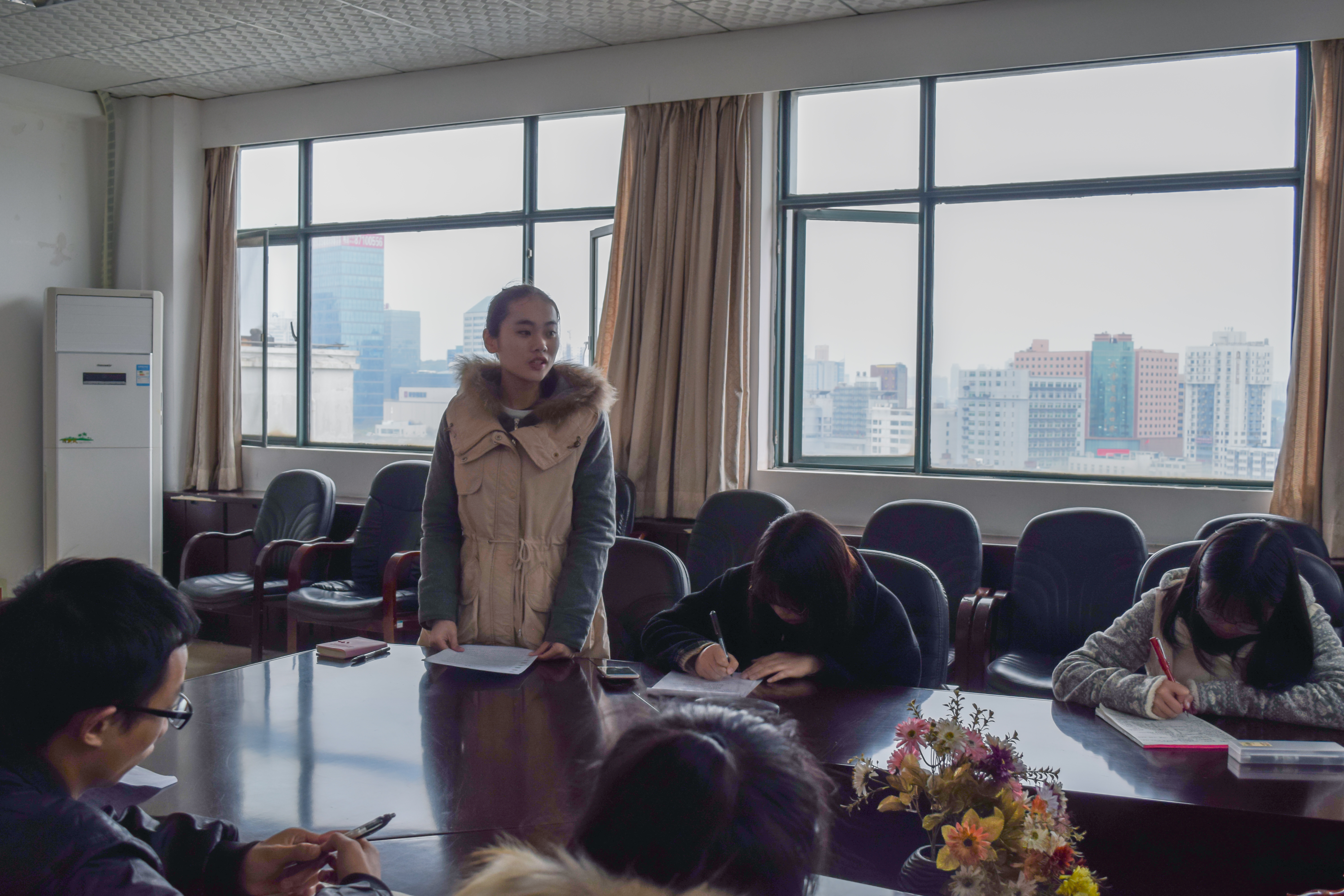 会议伊始,信息管理学院团委书记蒋可鸣进行了发言。她首先带领与会团干学习了刚刚召开的“两会”的相关精神,着重学习了我校党委书记马敏在“两会”上的讲话。她指出,作为团学干部,应当心怀祖国,关注时事,目光长远,深入思考作为高校学生,能为学校建设“双一流大学”做些什么。由大到小,蒋可鸣进而鼓励各基层团支部的干部,要多举办切合学生实际需求、切合时事走向的团支部活动,充分利用网络阵地,创新形式,加强各团支部的组织建设与文化建设。