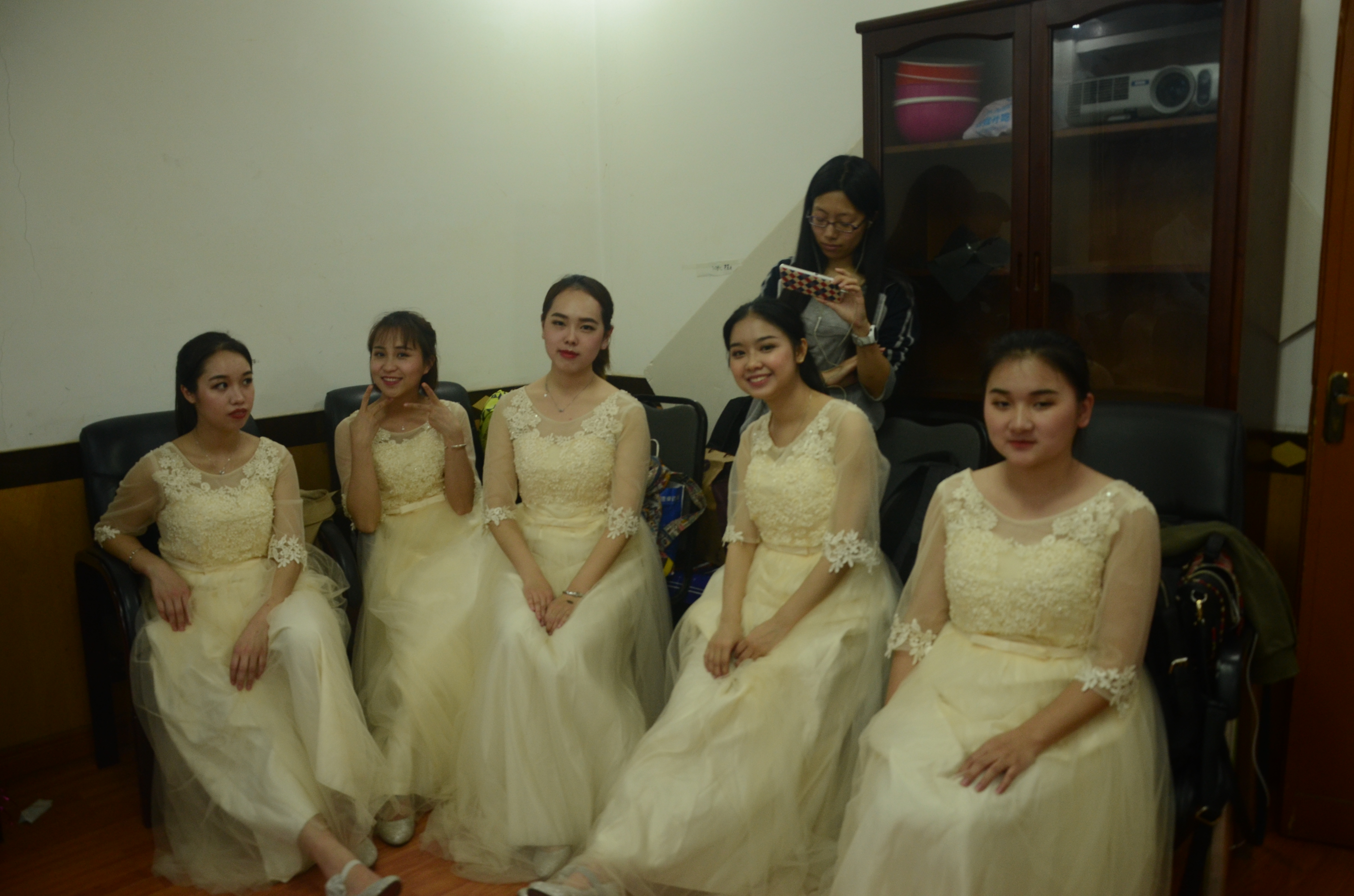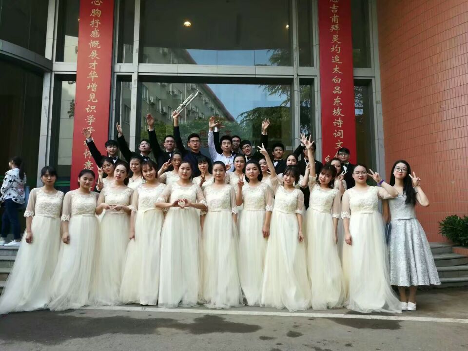 离开舞台,走到后台,信管合唱队的队员们如释重负,喜悦万分,不由得回溯起信管合唱团的点滴。初期组建非常困难,从3月初开始筹备宣传,召集参赛人员,经过逐一邀请,阵容才慢慢定型。合唱队成员杨格菲介绍道:“事情也并不都是一帆风顺的,花了较多时间在唱谱、发声、音准等基础训练上,而且要不断的磨合。过程自然是辛苦的。”除了自身的原因外,天气因素也不可小觑。武汉的天气忽冷忽热,有时队员们衣着单薄,还要在风中练习,有时天气干燥,梧桐絮纷飞,吸入喉咙使得嗓子非常不舒服。但是经过这么的困难,大家还是依旧坚持,走来圆满。