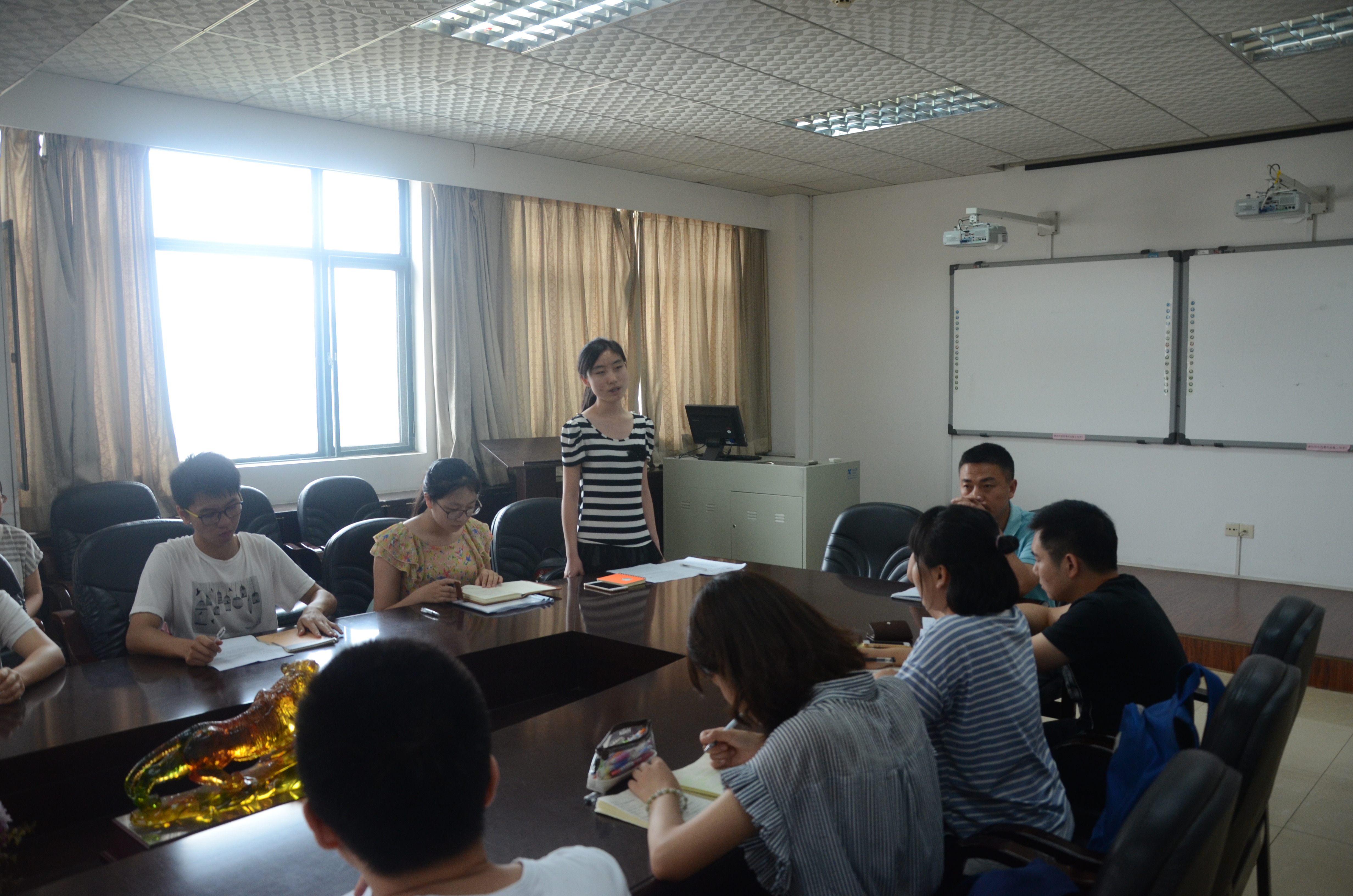 会议最后一项,由16级辅导员穆帆老师讲话。穆帆老师首先对杨副书记和蒋可鸣老师对16级同干部学的培养表示感谢,然后穆老师就分享了自己曾经在学生工作中的几点体会:自己要足够优秀,不止在学习上,还有品德和为人处世上,要站在更高的高度思考问题。