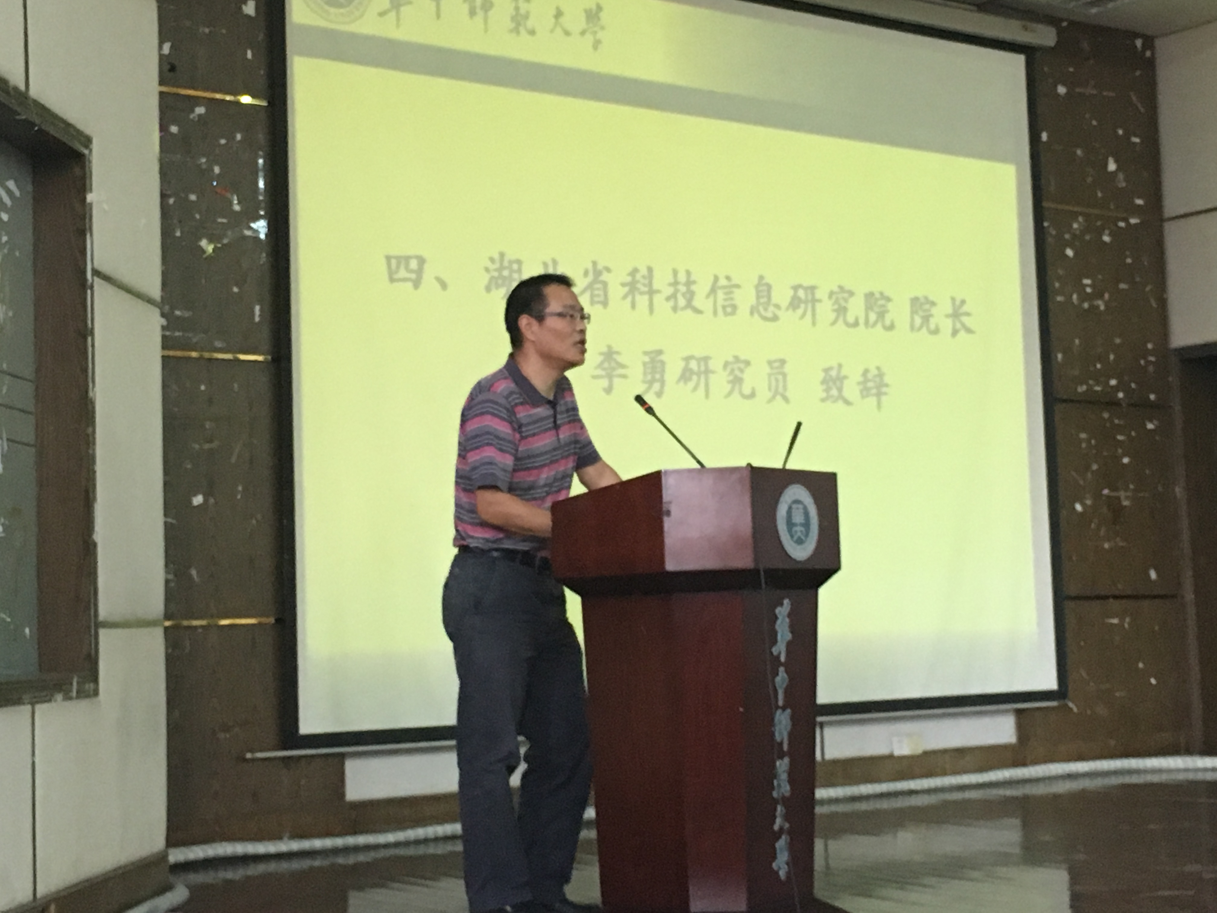 之后,湖北省科技信息研究院院长李勇研究员对信息研究院进行了详细介绍,并向新生们讲述了研究院现有研究中的几大重点,如科技信息资源共享建设、科技决策业务建设以及基础与应用研究相结合等,加强了新生们对于研究院的了解与认识。最后李院长也对新生们加入信息研究院学习表示热烈欢迎。