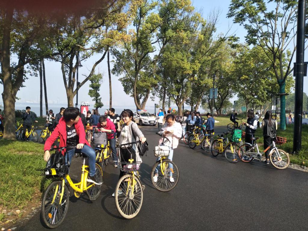 大家步行去东湖,一路上将道旁风景尽收眼底,大家有说有笑,一点也不感觉路途的遥远和时间的长久!到了东湖以后,大家分为两组,一组会骑车的同学骑小黄车,另一组则步行前进,大家有条不紊的向目的地东湖磨山自然景区进发。半个小时之后,大家来到了磨山,在门口集合之后分组游玩,在这里同学们欣赏到众多起伏的山脉,和清晰的河流,大家唱着歌,享受着时光!