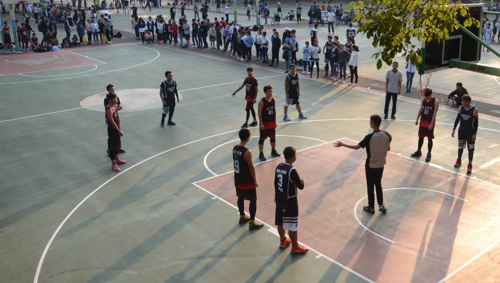 热身结束,哨声响起,比赛正式开始,双方队员角逐激烈,教院先进一球,我院紧随其后,23号刘睿之也投进一球。球员在赛场上你追我赶,观众的目光随着被传动的球不停移动。紧接着教院连进一个三分球和一个两分球,场上气氛愈加紧张。我方队员紧密配合,传球、拦截,81号孙凯进球拿到两分。教院力图阻拦我方攻势,造成犯规,我方孙凯罚球得一分,赢得欢呼。第一小节过后,我院以5:7的比分落后。