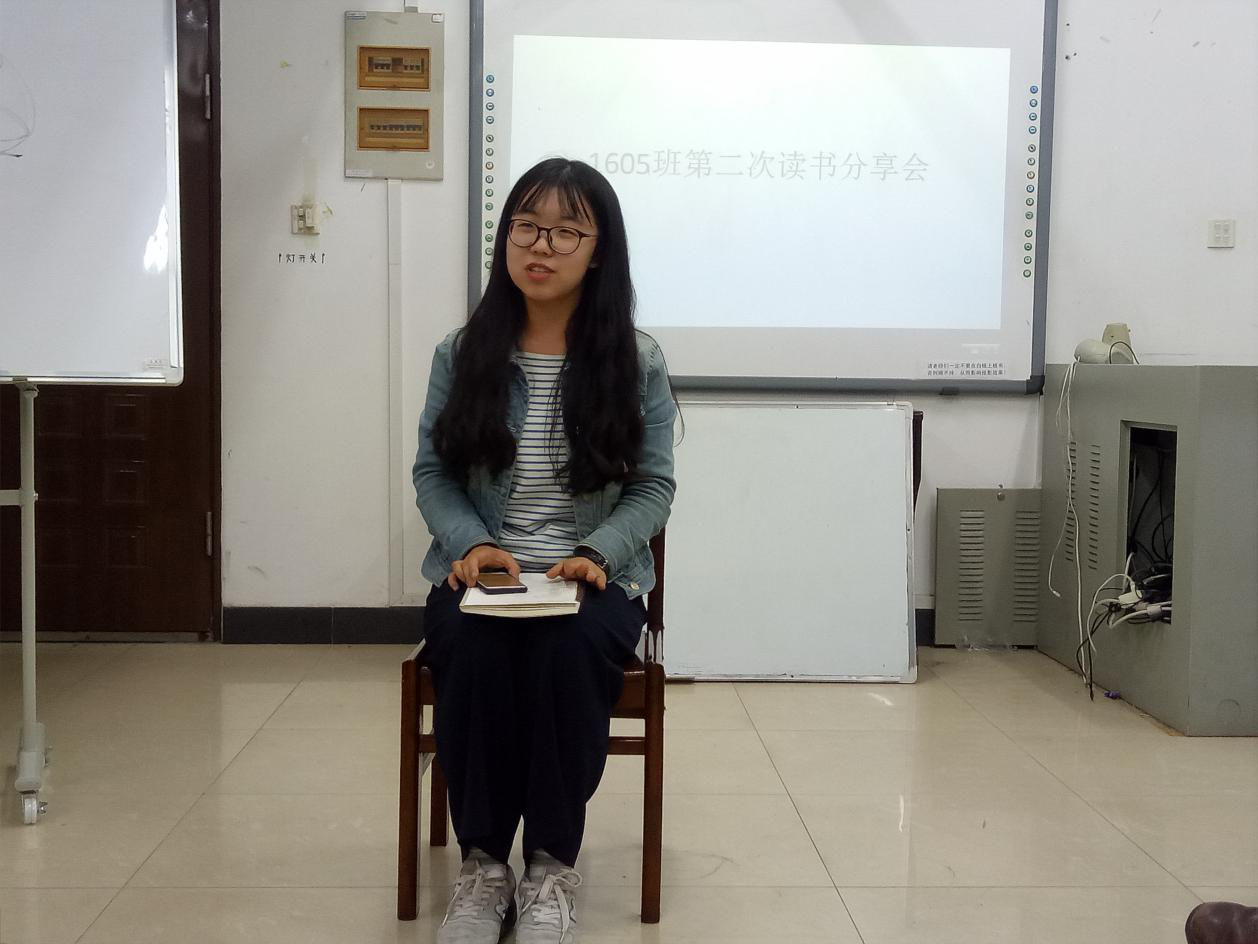 分享会伊始,1605班班长王妞妞进行开场白,并为各位同学准备零食。气氛活跃起来后,读书分享会正式开始。