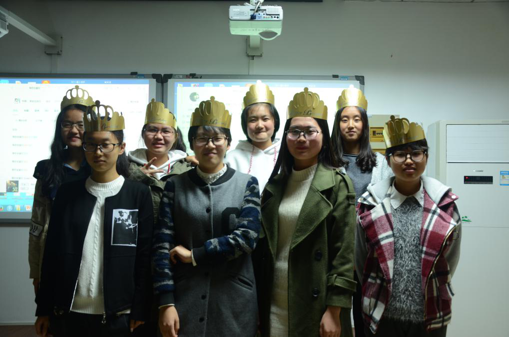 另外我们为所有十月,十一月,十二月份生日的同学带上皇冠,同唱了生日歌。班委为同学们切开了事先准备好的蛋糕。