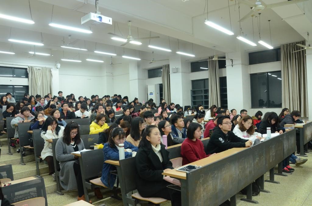 此次讲座以华中师范大学学习贯彻党的十九大精神进班团为背景,旨在强化大学生勇于担当的使命感,责任感。甄诚老师以香港回归20年回顾与展望为题,带同学们回顾了香港回归之前的屈辱史,为同学们介绍了香港回归后20年间的社会发展,民生百态,最后勉励全体学生,敢于担当,坚决维护国家统一,做勇当担任的新青年。