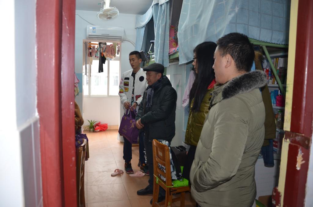 12月7日,正值二十四节气中的大雪,最低气温逼近零度。信息管理学院党委书记刘宝卿,副书记杨青松,团委书记蒋可鸣,辅导员穆帆、范曜晖走进学生寝室,开展冬日送暖活动,为缺衣少被的困难学生发放了保暖用品。