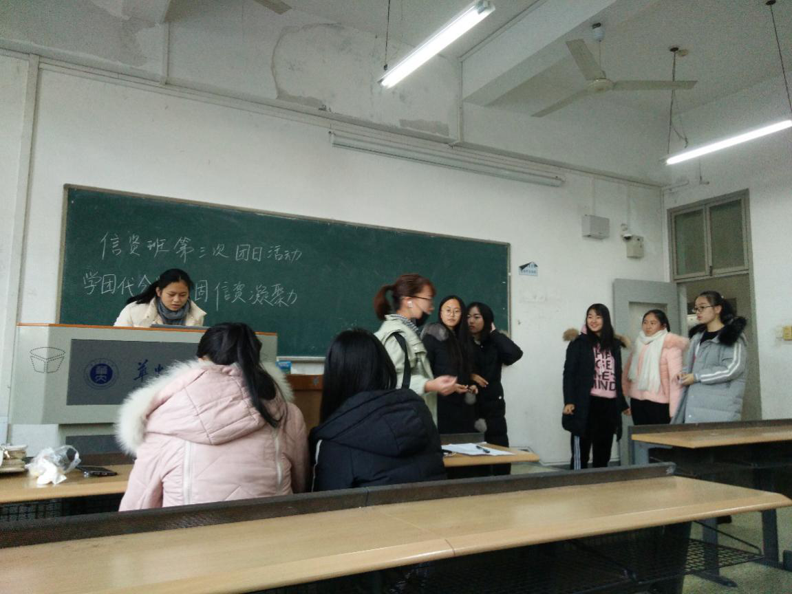 (通讯员 夏玉清)十二月是一个美丽的红色月,在党的十九大胜利召开的号角下,共青团代表大会也完整闭幕。伟大的时代,召唤新时期的青年,为了学团代会精神,固信资凝聚力,信资1701班于12月17日星期日上午十点于八号楼8215教室举办了第三次团日活动。