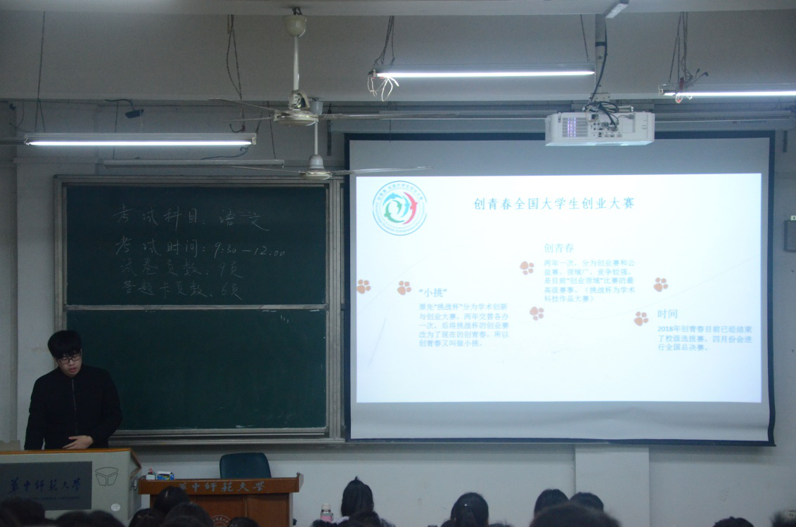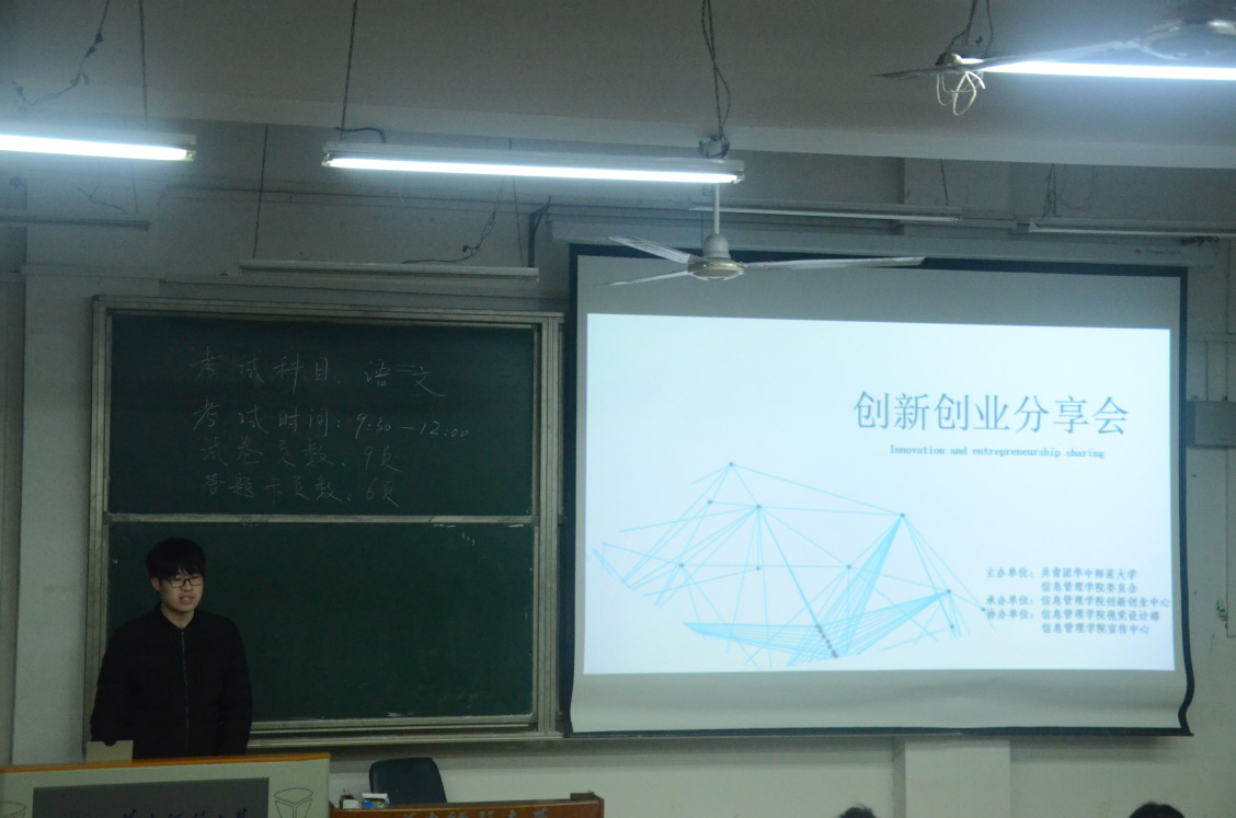 (通讯员:谢双蔓 郭致怡)1月1日晚,创新创新分享会在信息管理学院17级晚点名期间举行。此次分享会由共青团华中师范大学和信息管理学院委员会主办,信息管理学院创新创业中心承办。信息管理学院创新创业中心部长陈欢担任本次分享会的主讲人。