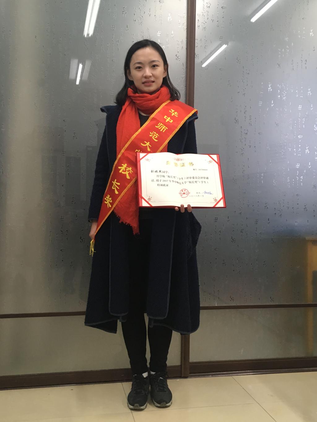 (通讯员:郭致怡 陈心雨)2017年1月4日下午,2017年度学生先进集体、先进个人表彰大会暨“校长奖”颁奖典礼在科学会堂一楼报告厅隆重举行。继去年我院2013级本科生苑亚坤斩获华中师范大学首届“校长奖”之后,经过层层选拔和激烈角逐,2014级本科生刘姝然在众多“校长奖”评选者中脱颖而出,荣获学校第二届“校长奖”,彰显了我院人才培养的又一成果,也展现出信管优秀学子的风采。