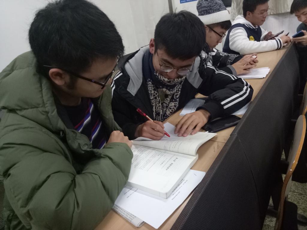 首先对高数进行针对性复习答疑。陈志远提出了一道题,大家先自行思考了一会儿,再请一位同学上台讲解。第一位上台讲题的是扶天然同学,扶天然用两种不同的方法讲解了这个题,他说:“这个题可以通过多种思维方式解决,虽然考试我们只用写一种答案,但是一题多做可以拓宽我们的题路。”