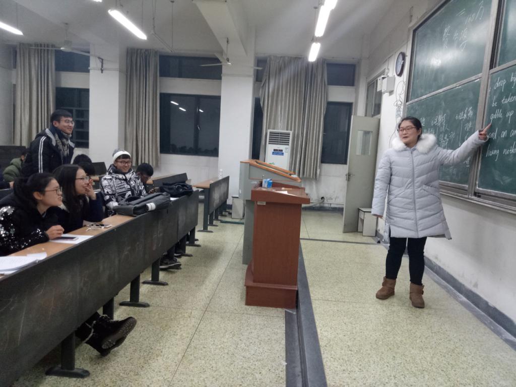 高数问题解决后,周梦蝶带领大家对英语进行了解疑。她上台抄写了一个句子,并邀请同学们对这个句子进行翻译,针对同学们翻译过程中出现的问题,她进行了分析、改正,还给大家分享了自己翻译用的一些小技巧。希望这些技巧可以对大家的学习有所帮助。